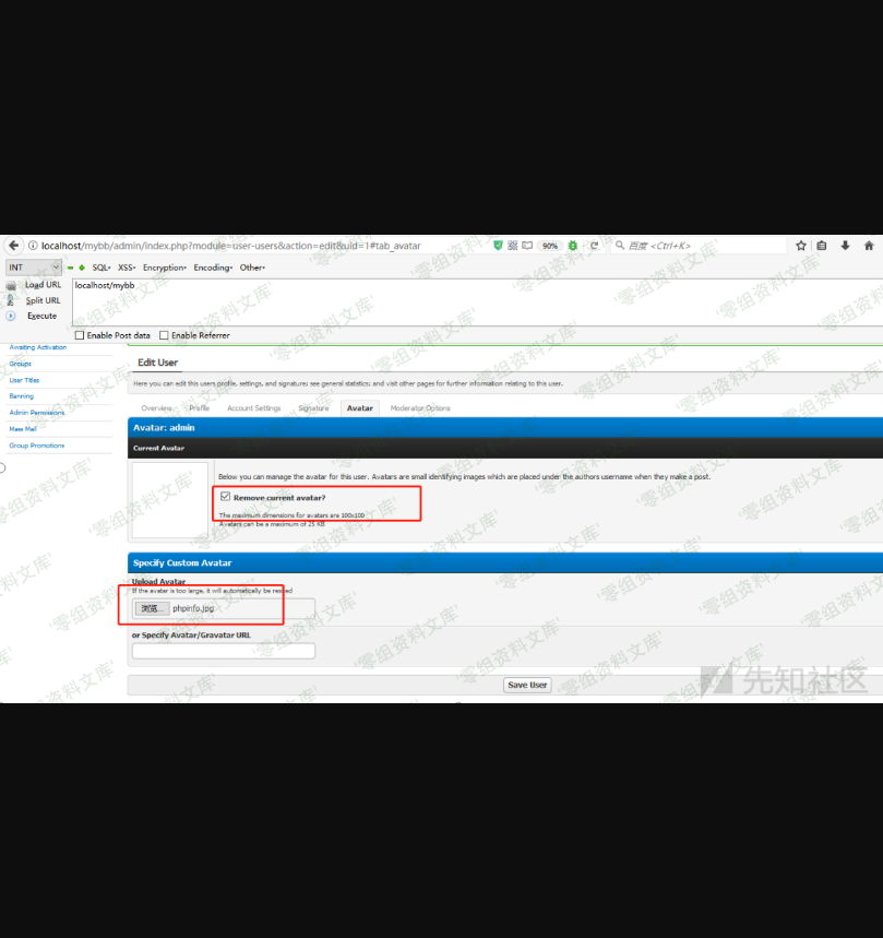 通过上传头像图片:http://www.0-sec.org/mybb/admin/index.php?module=user-users&action=edit&uid=1\#tab\_avatar勾选去掉当前头像