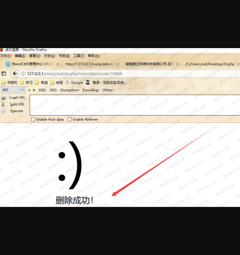 于是我直接构造一个新的url,http://127.0.0.1/cve/p/admin.php/User/del/ucode/10004(上面是10003)