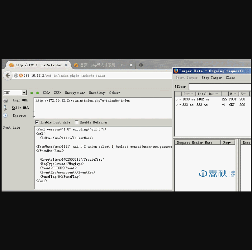 接下来还需要修改HTTP头,伪装成XML,点击浏览器上方工具栏,打开Tamper Data ,点击启动。