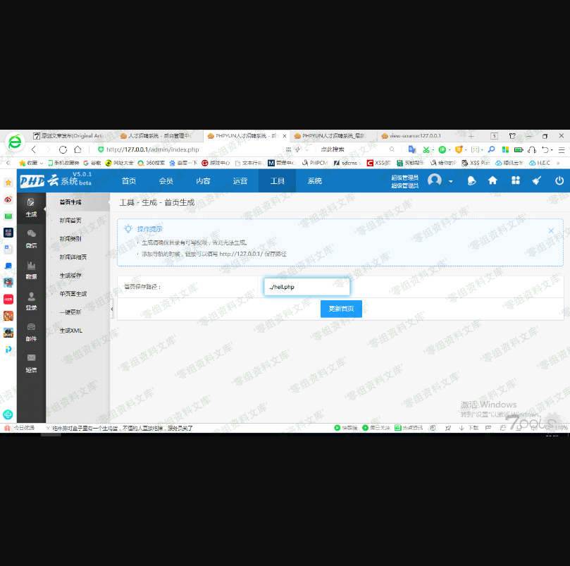 又去翻了下后台功能,发下有个生成功能,并且没有后缀限制。