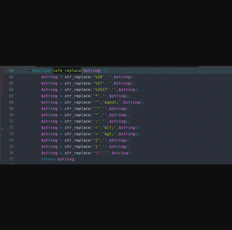 $_GET[\'src\'] 只是经过了 safe_replace 函数的过滤,该函数会将某些字符替换为空,而我们却可以在 payload 中插入这些字符,从而绕过黑名单的过滤。 safe_replace 函数代码如下: