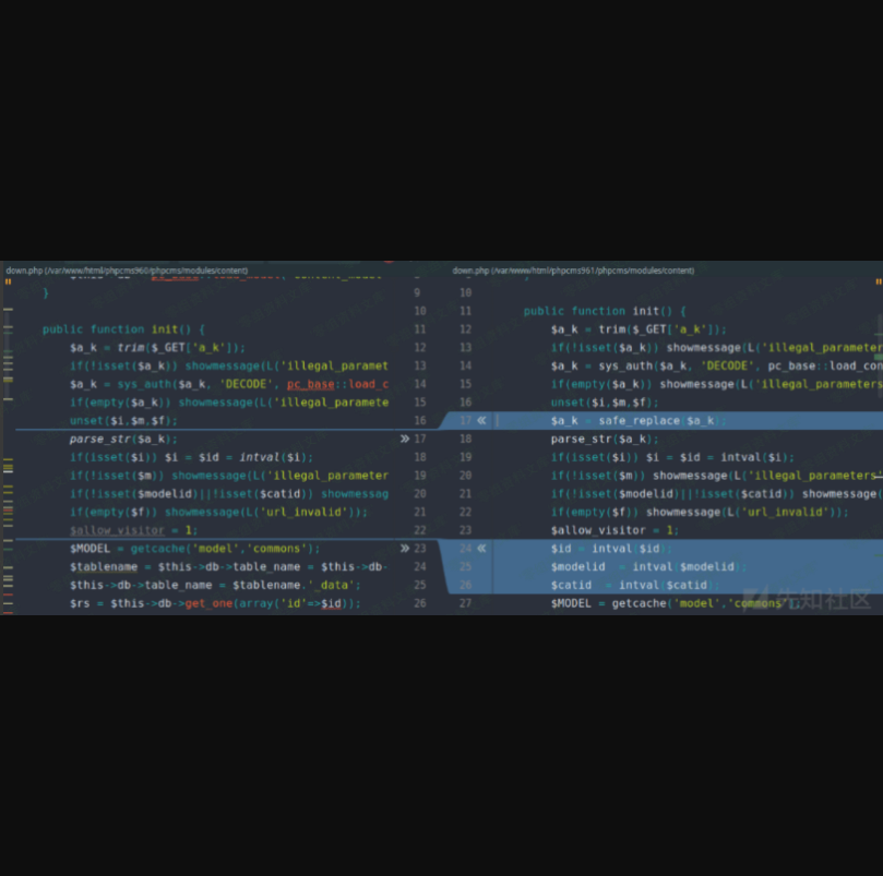 最后来看一下官方发布的 PHPCMS v9.6.1 中是如何修复这个漏洞的,补丁如下: