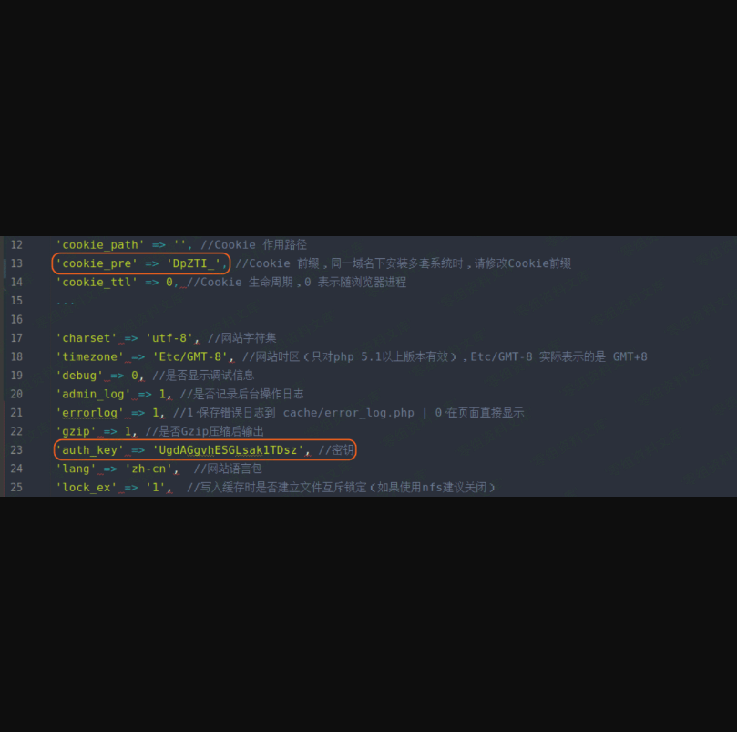 而 pc_base::load_config(\'system\', \'auth_key\') 的值在网站搭建好后,会存储在 caches/configs/system.php 中,我们可以通过任意文件读取来获得这个值。