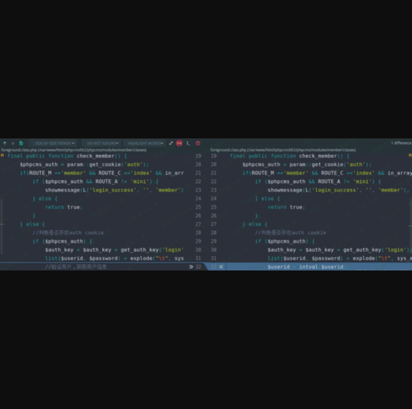 可以明显看到,补丁将解密后获得的 $userid 进行了强转。