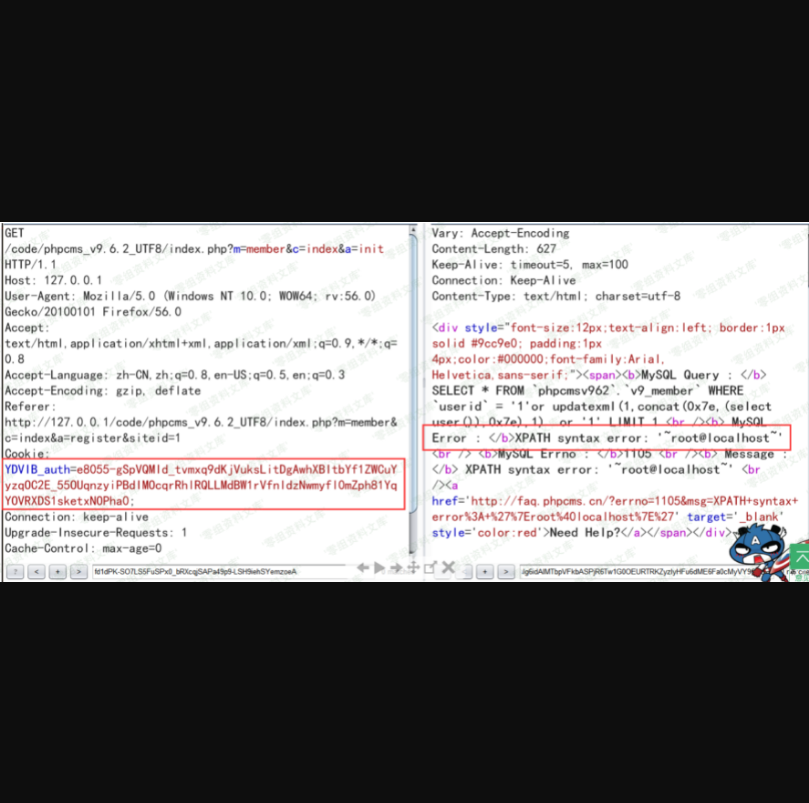 最终利用的现象,cookie中的YDVIB_auth参数名称,前缀是安装时候生成的可能不一样,可以在配置文件中找到对应的值,可以先注册普通用户然后看服务端下发的cookie中字段名称中xxx_auth的参数名称,便是存在漏洞的位置。