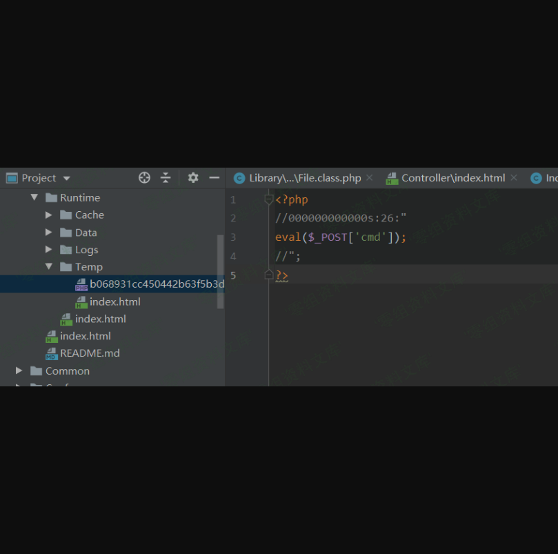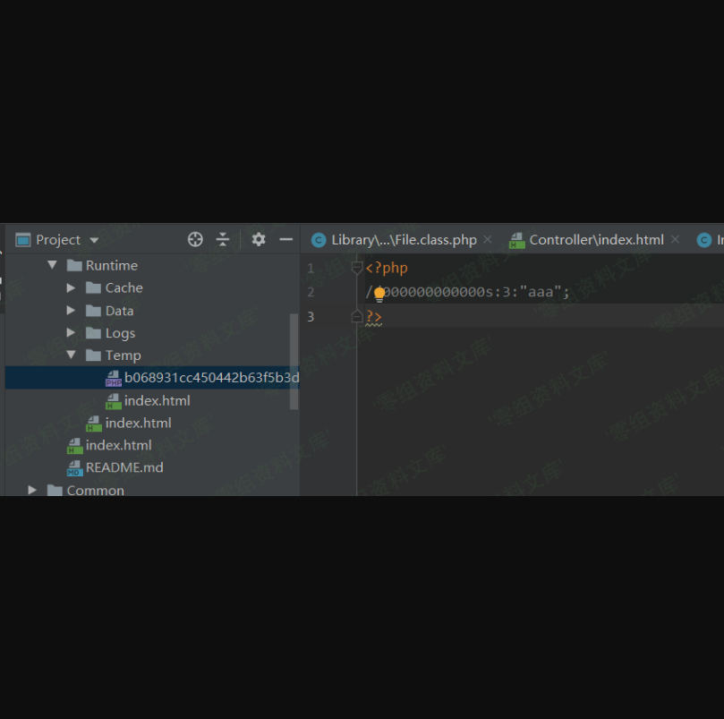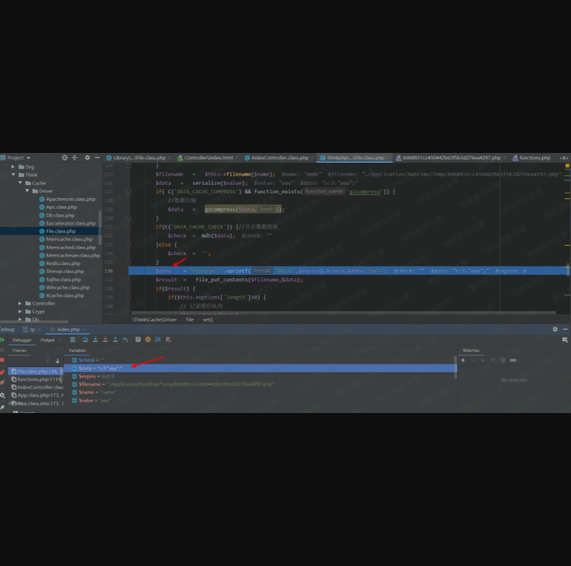可以看到$data参数经过序列化,直接写入php后缀的文件。F9运行可以看到,在Application/Runtime/Temp/文件夹下生成了php文件。