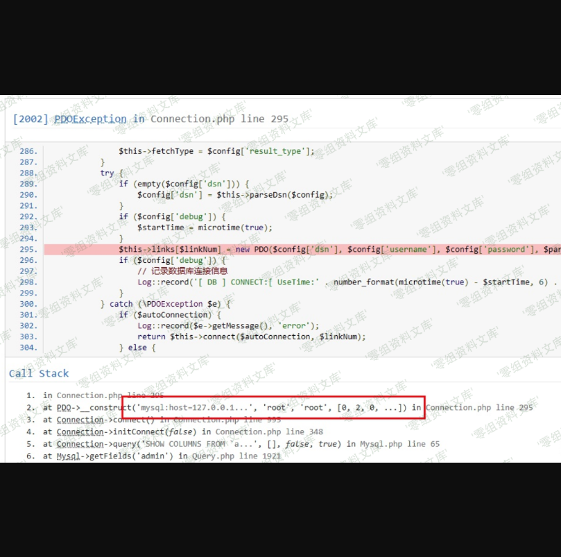 Thinkphp 5.0.24 在开启debug的模式下,可通过高线程爆破mysql导致tp报错泄露mysql账号密码。