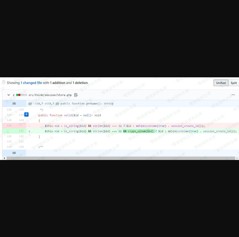官方修复vendor/topthink/framework/src/think/session/Store.php中setId()方法