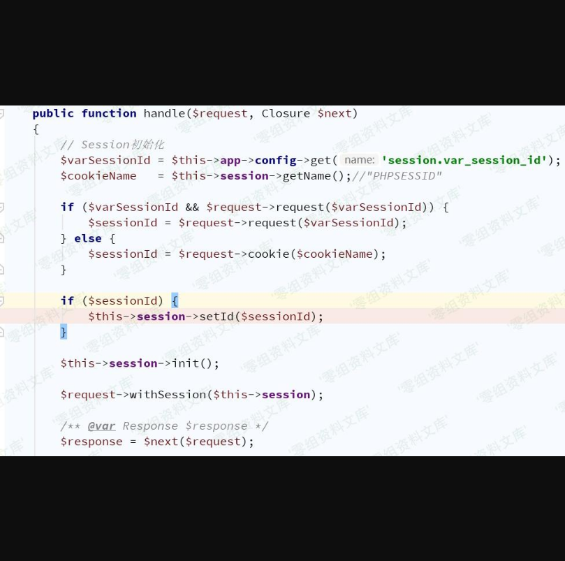 回溯该方法调用情况,在vendor/topthink/framework/src/think/middleware/SessionInit.php中发现调用