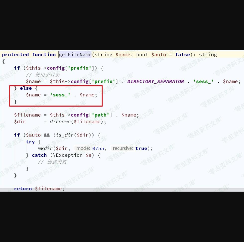 在上文write()方法中,文件名$filename经过了getFIleName()的处理,而该方法会在传入参数前添加"sess_",也就是说文件名后部分可控,这是比较重要的一个点。