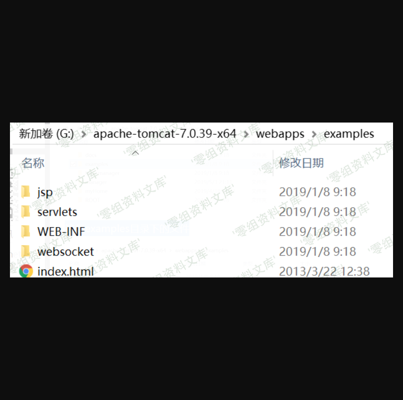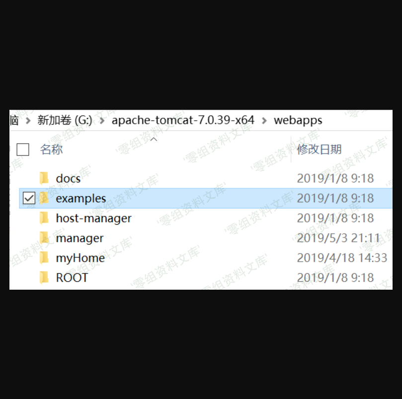 如图,是Apache tomcat 网站根目录下的文件夹,默认是有一个examples目录的