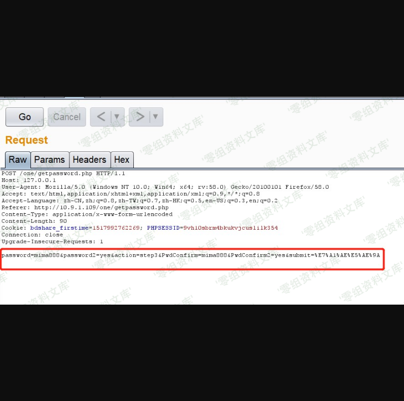 这里session就是上面获取到的,只需要修改 post-data值就可以。这里改成mima888。action值要改成step3