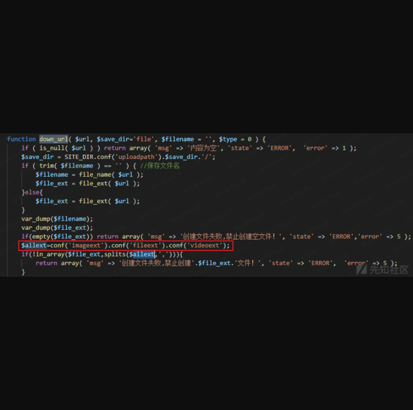 在down_url函数逻辑中根据url获取了保存的文件名和后缀,并且进行了文件名后缀的白名单限制和检测。