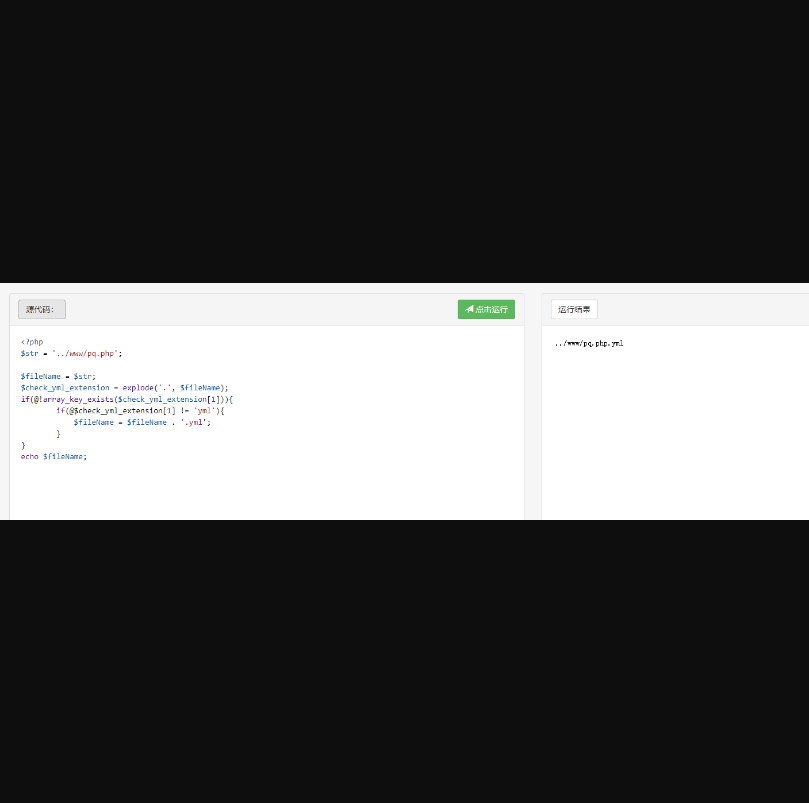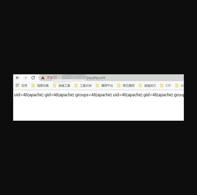 这里写入文件 pq.php.yml,并使用 ../ 跳出限制的目录,访问 pq.php.yml 实际访问了 pq.php,执行id命令