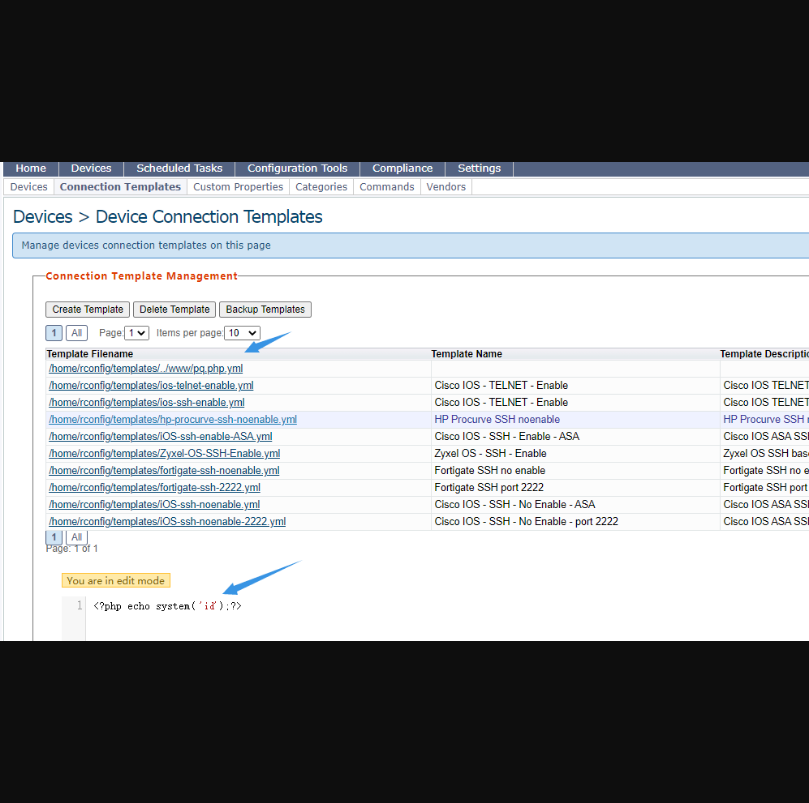 rConfig ajaxEditTemplate.php 存在后台远程命令执行