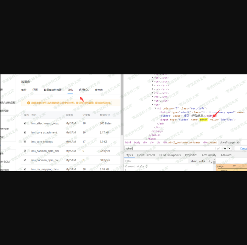 但是恰巧微擎支持SQL操作,虽然有些绿化版本的把SQL提交按钮和TOKEN值隐藏了,但是由于微擎一个页面做了多个CASE,所以可以数据表优化处找到TOKEN