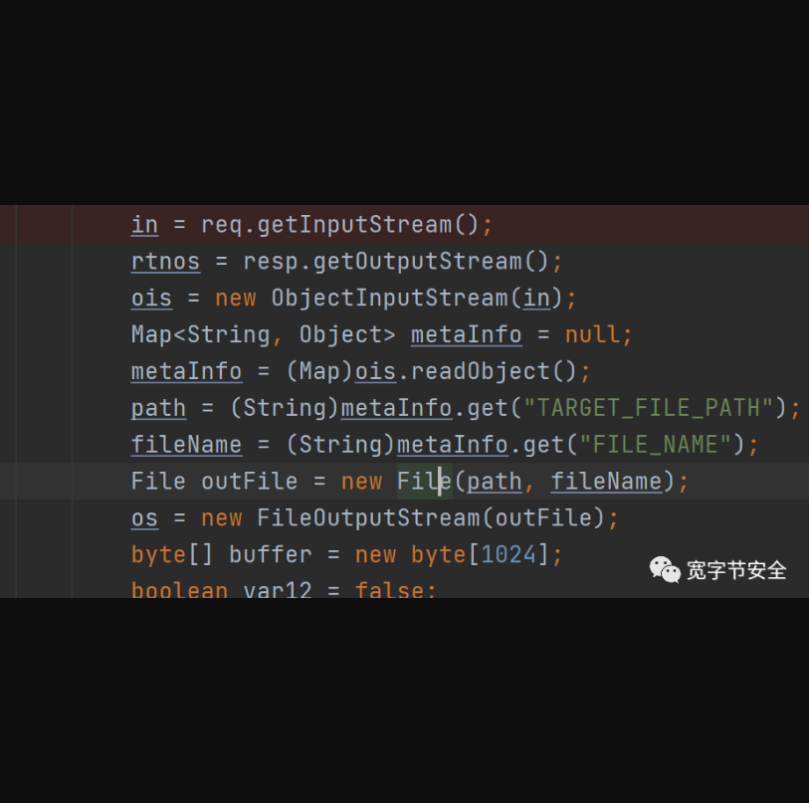 任意文件上传分析代码在servlet.FileReceiveServlet。在这里我们可以看到,从请求中读取流,然后转换为map类型并读取上传文件的路径。然后再读取待上传的文件。